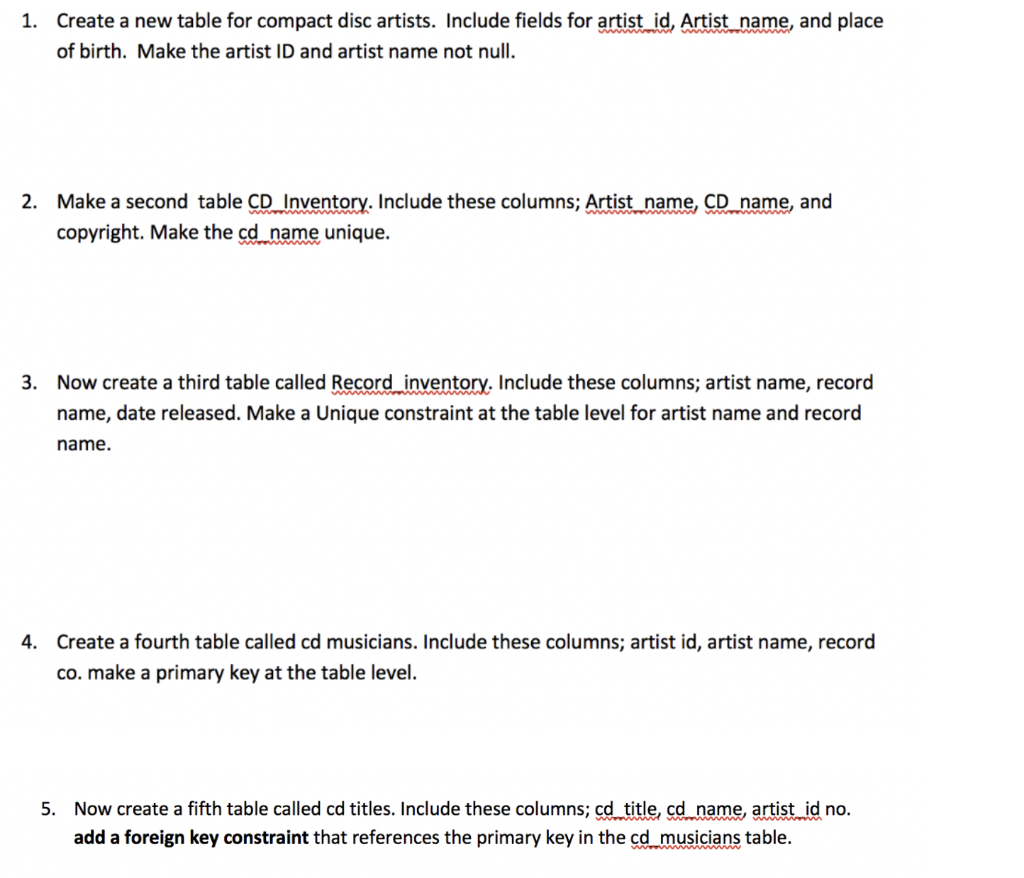 Solved 1 Create A New Table For Compact Disc Artists Chegg Com